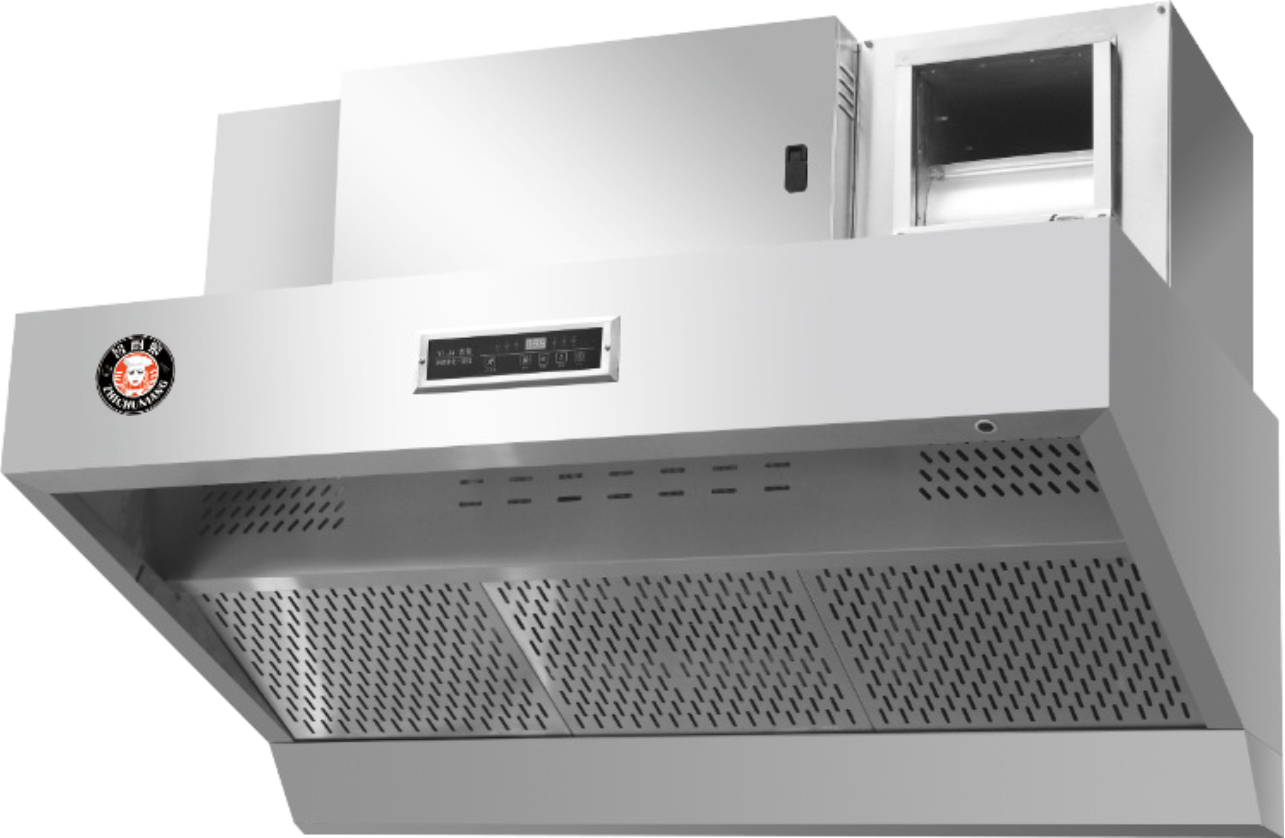 复合油烟净化一体机结构主要由:不锈钢烟罩、滤油网油烟分离盘、高低压静电电场、离心风机、接油盘、电器接线盒等组成